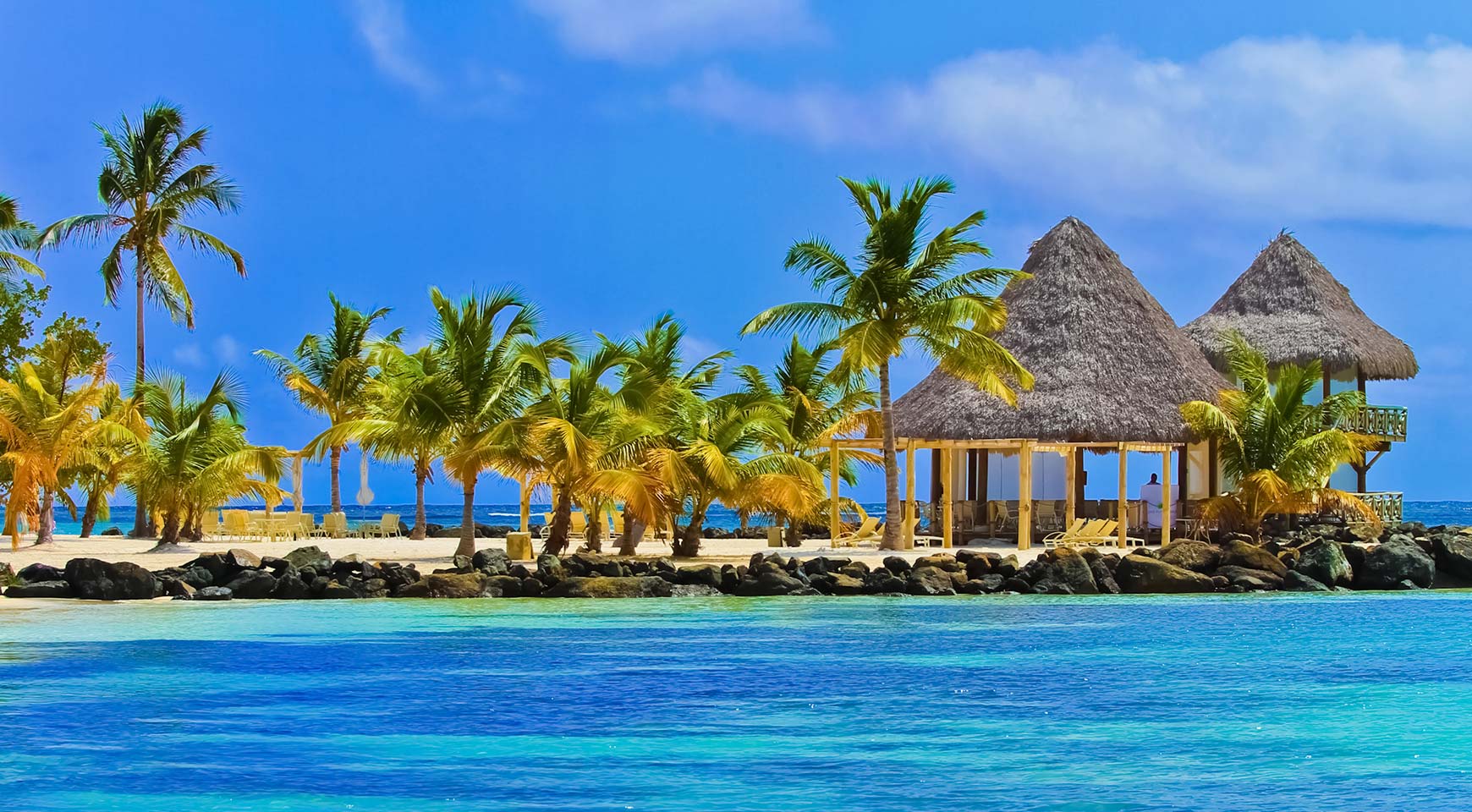 the partially-inhabited Isla Saona counts multiple white sand beaches, including La Palmilla, the largest natural pool in the Caribbean with shallow, crystal turquoise waters teeming with starfish, corals, and other
