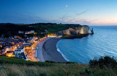 The coastlines offer contrasting landscapes: mountain ranges along the French Riviera, coastal cliffs such as the Côte d'Albâtre, and wide sandy plains in the Languedoc.
