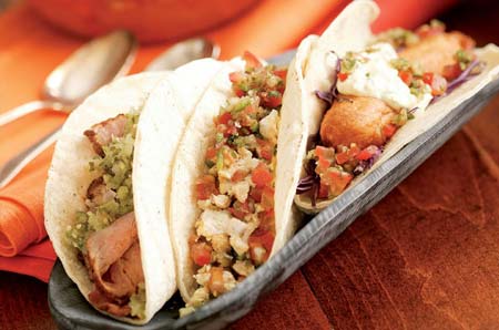 A basket of hot tortillas – savoury cornmeal pancakes – is always on the table. Tacos, available everywhere, consist of crispy tortillas topped with beef, pork or fish. And there's a huge range of corn-based antojitos
