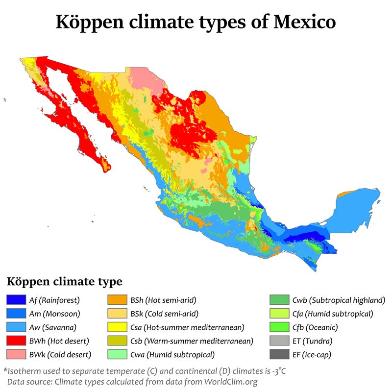 temperatures are fairly constant year round and vary solely as a function of elevation. This gives Mexico one of the world's most diverse weather systems.